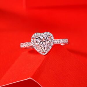 S925 sterling silver ring heart shape 1ct moissanite engagement wedding ring for women
