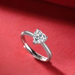 S925 sterling silver ring heart shape 1ct moissanite engagement wedding ring for women