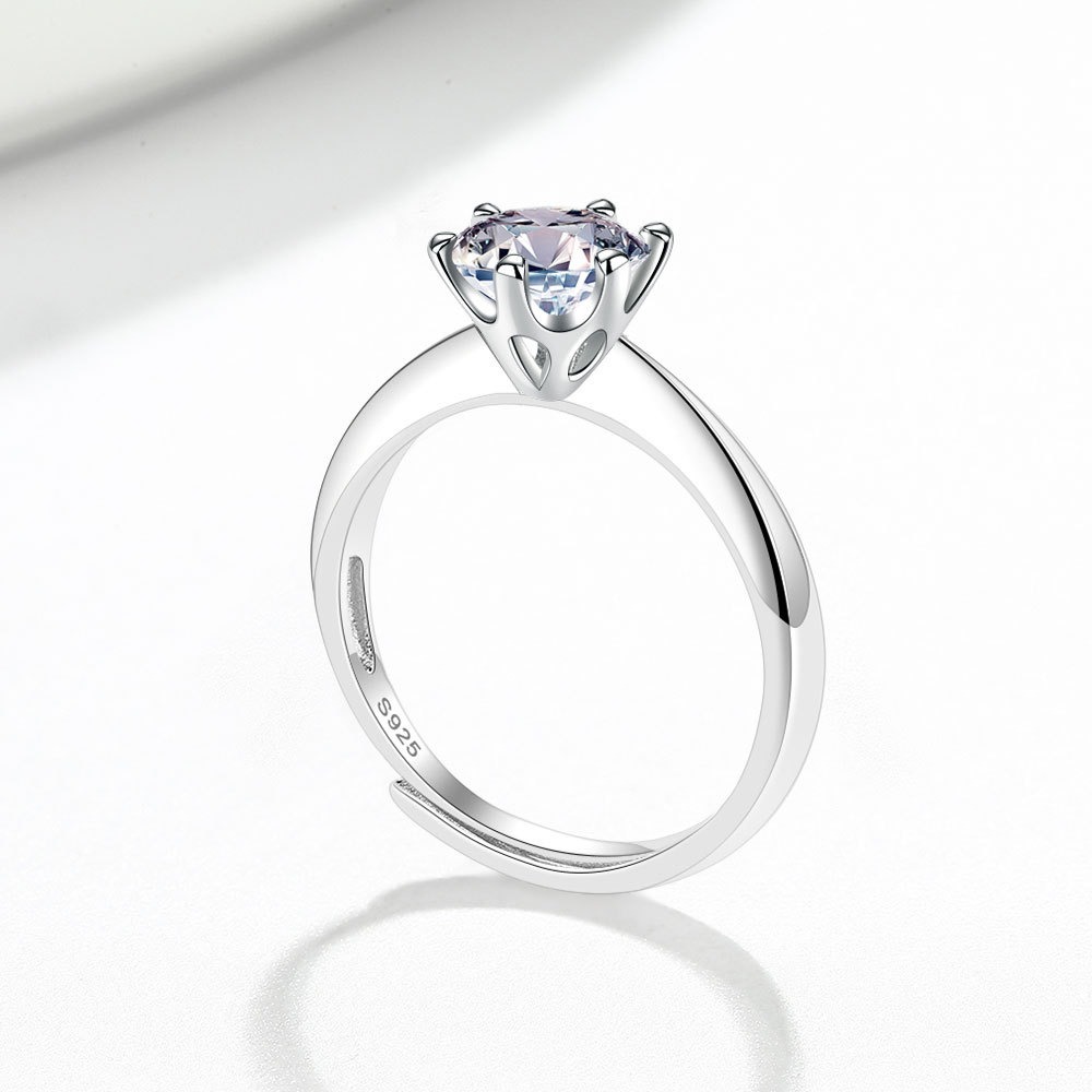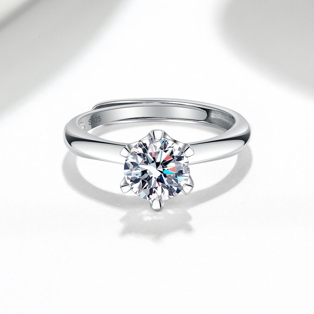 S925 sterling silver ring opening adjustable 1 carat GRA moissanite ring for women