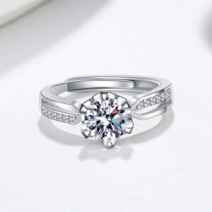 S925 Sterling Silver Ring Opening Adjustable 1 Carat GRA Moissanite Ring for Women