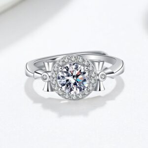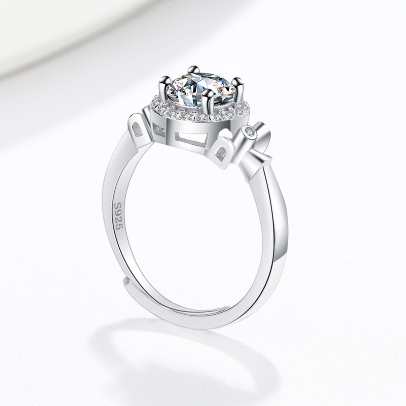 S925 Sterling Silver Ring Opening Adjustable 1 Carat GRA Moissanite Ring for Women