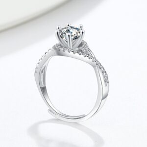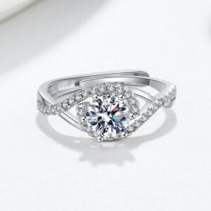 S925 Sterling Silver Ring Opening Adjustable 1 Carat GRA Moissanite Ring for Women
