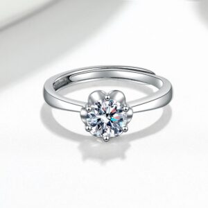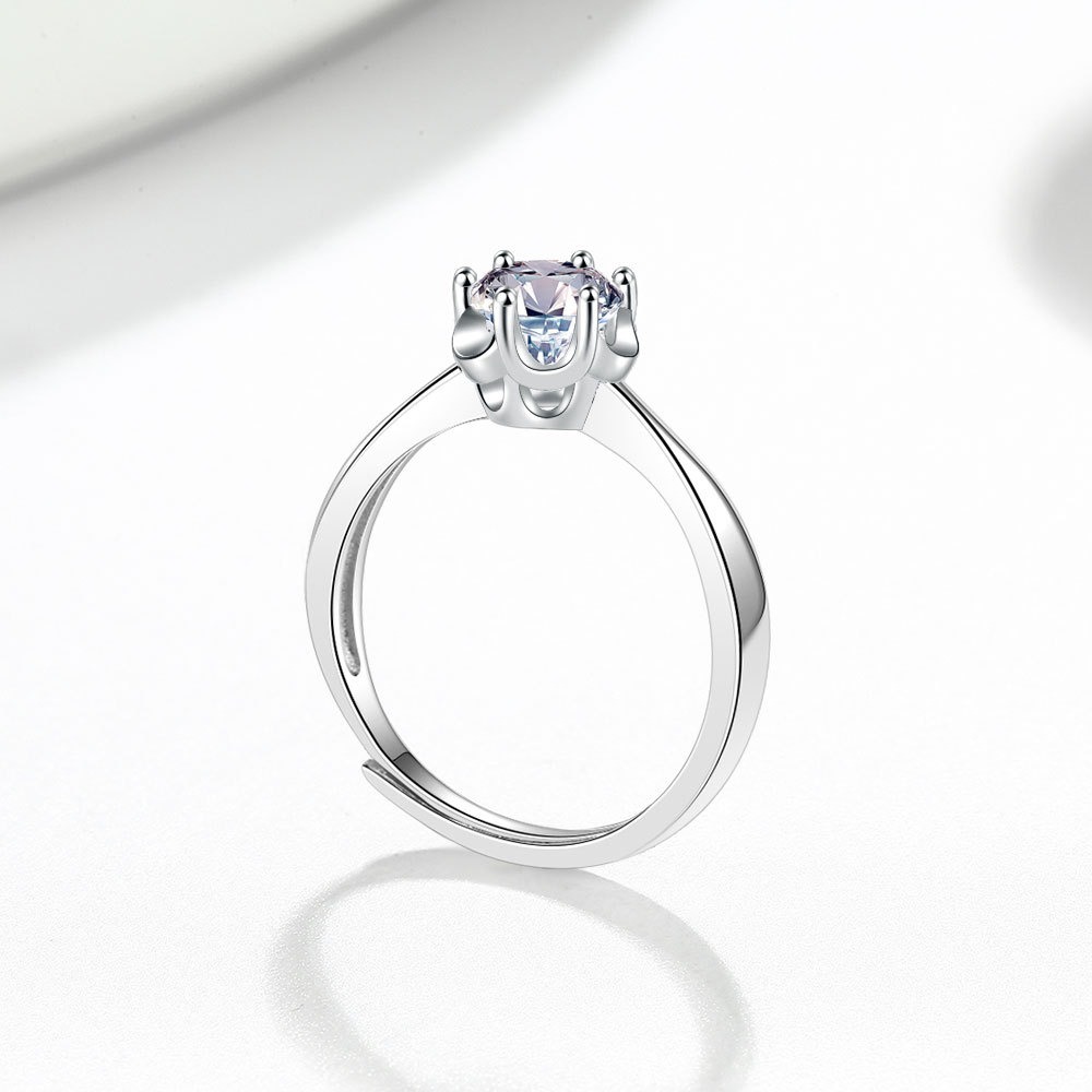 S925 sterling silver ring opening adjustable 1 carat GRA moissanite ring for women