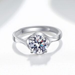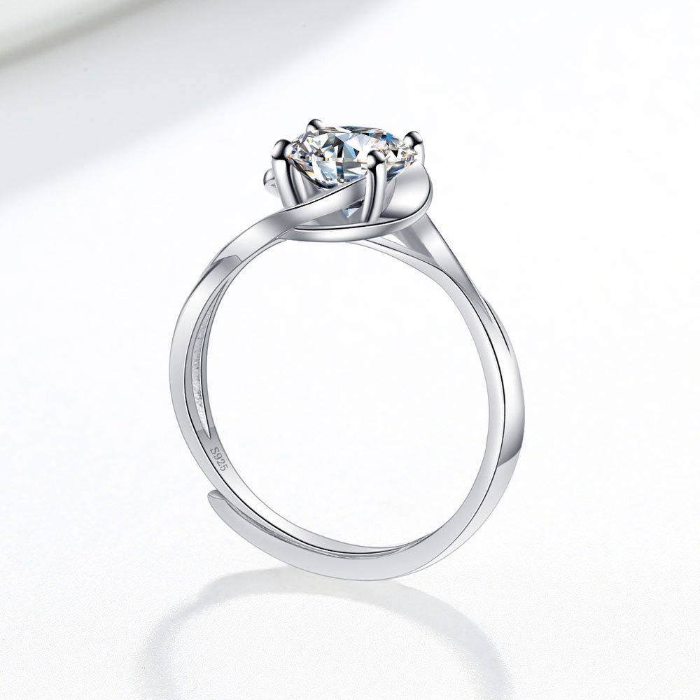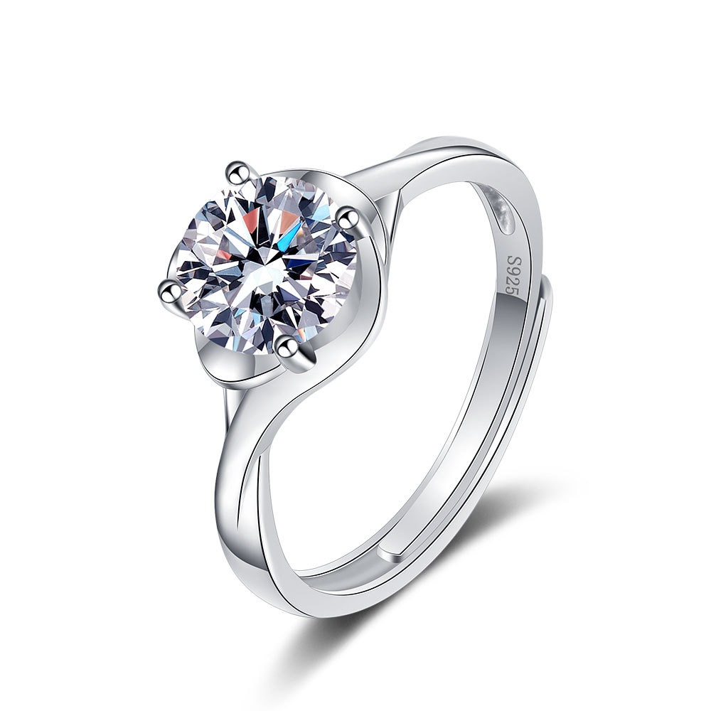 S925 sterling silver ring opening adjustable 1 carat GRA moissanite ring for women