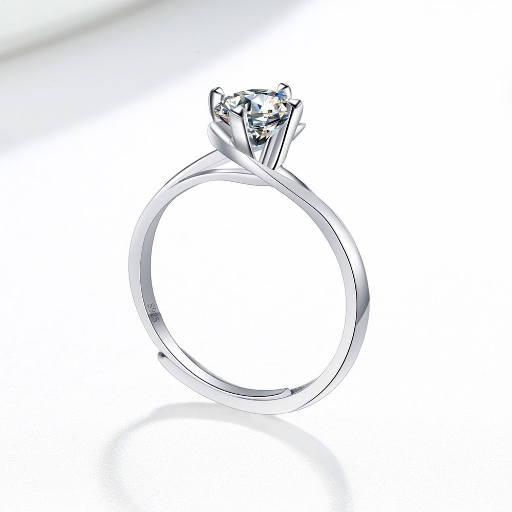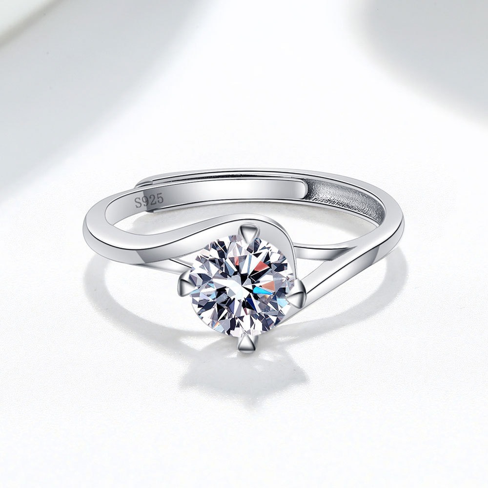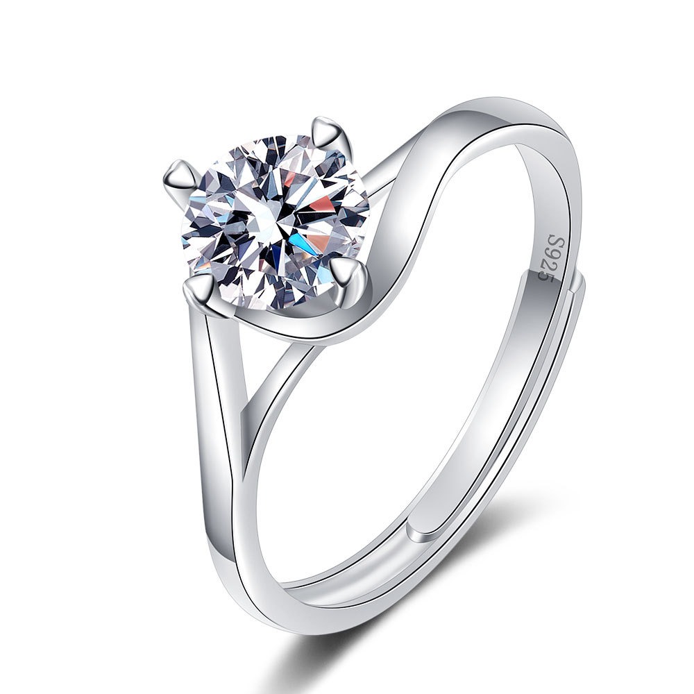 S925 sterling silver ring opening adjustable 1 carat GRA moissanite ring for women