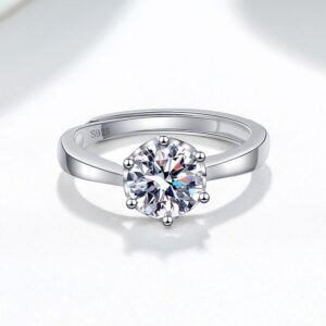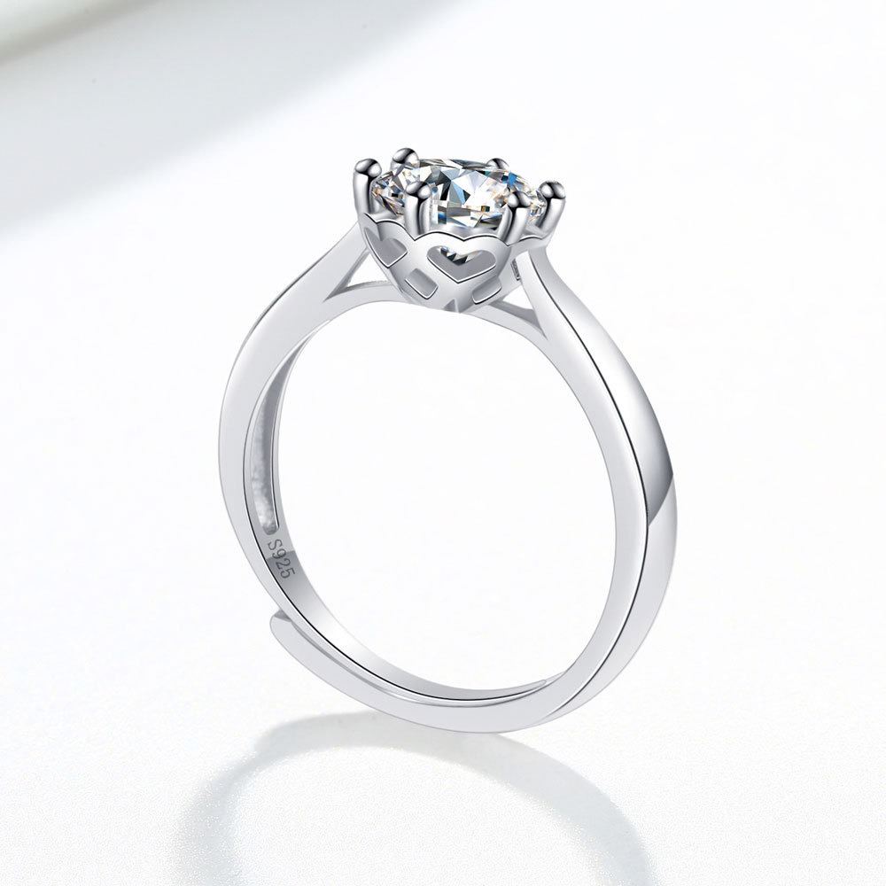 S925 sterling silver ring opening adjustable 1 carat GRA moissanite ring for women