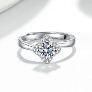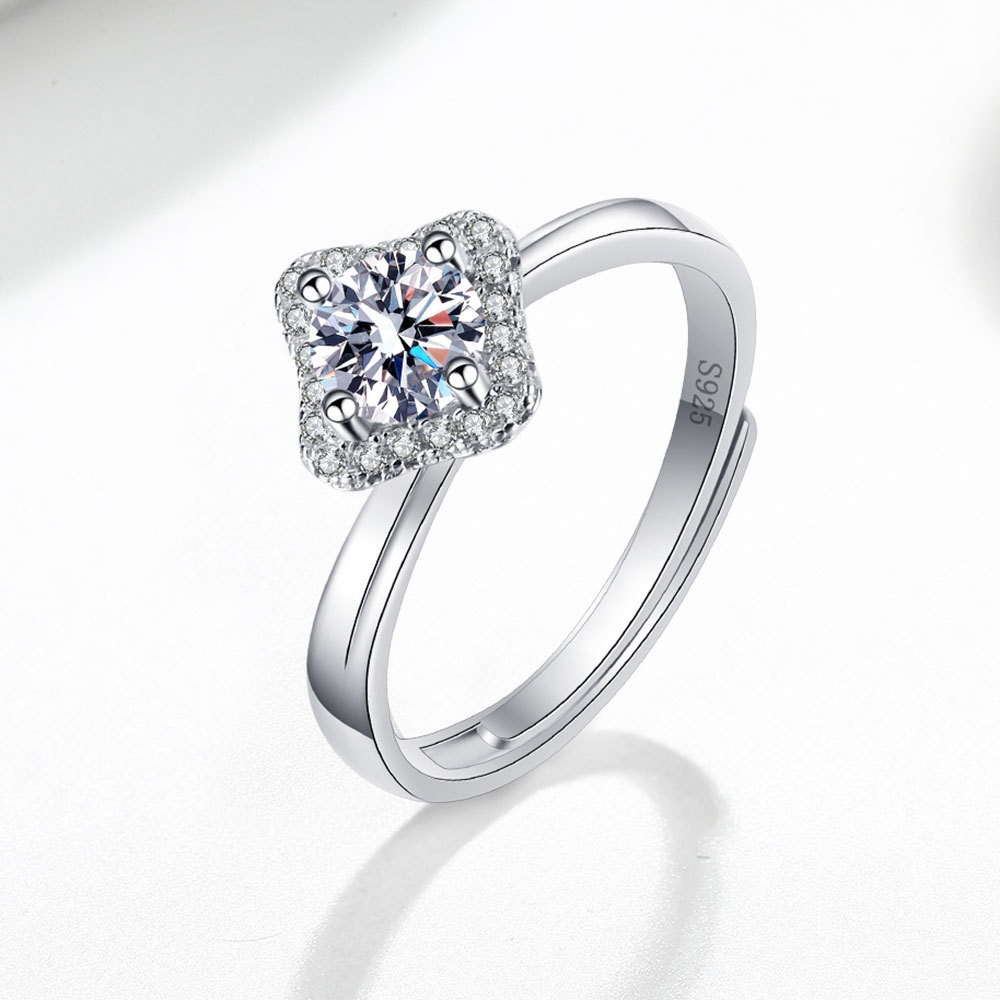 S925 sterling silver ring opening adjustable 1 carat GRA moissanite ring for women