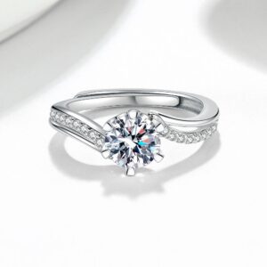 S925 Sterling Silver Ring Opening Adjustable 1 Carat GRA Moissanite Ring for Women