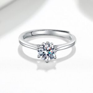 S925 sterling silver ring opening adjustable 1 carat GRA moissanite ring for women