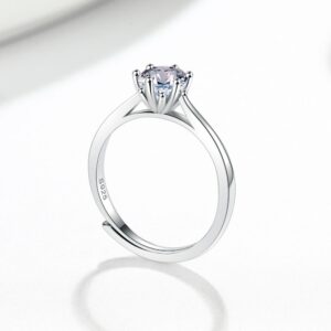S925 Sterling Silver Ring Opening Adjustable 1 Carat GRA Moissanite Ring for Women