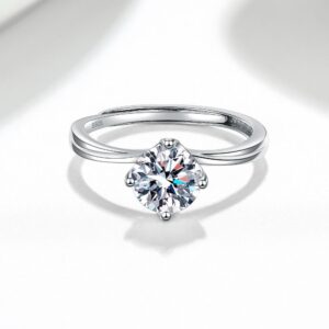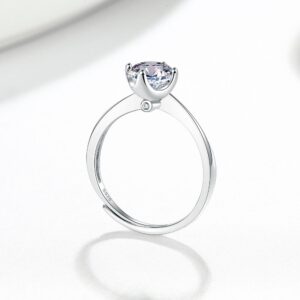 S925 sterling silver ring opening adjustable 1 carat GRA moissanite ring for women