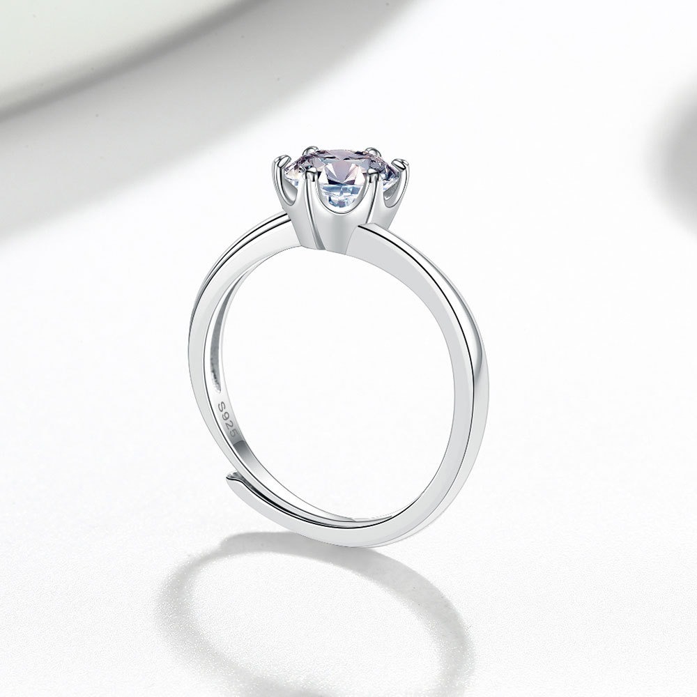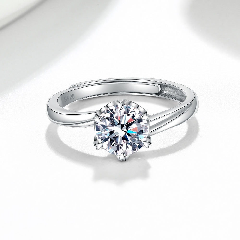 S925 sterling silver ring opening adjustable 1 carat GRA moissanite ring for women