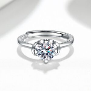 S925 sterling silver ring opening adjustable 1 carat GRA moissanite ring for women