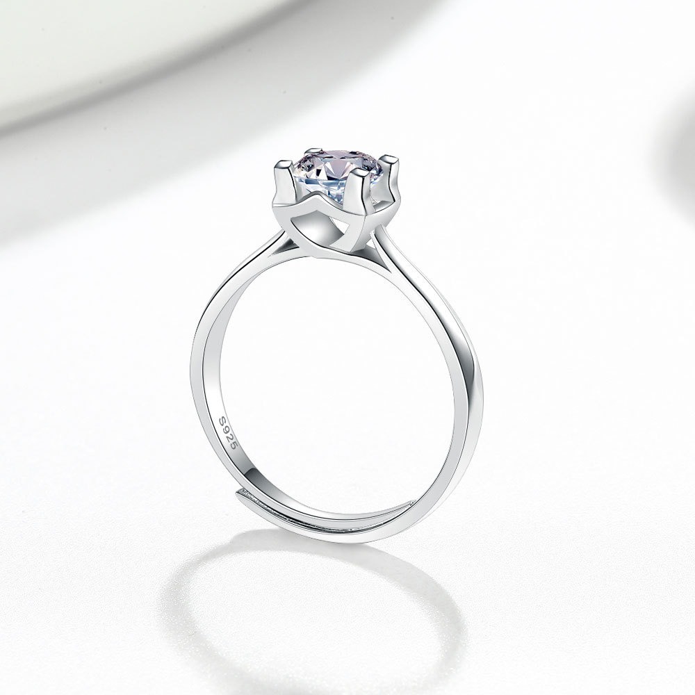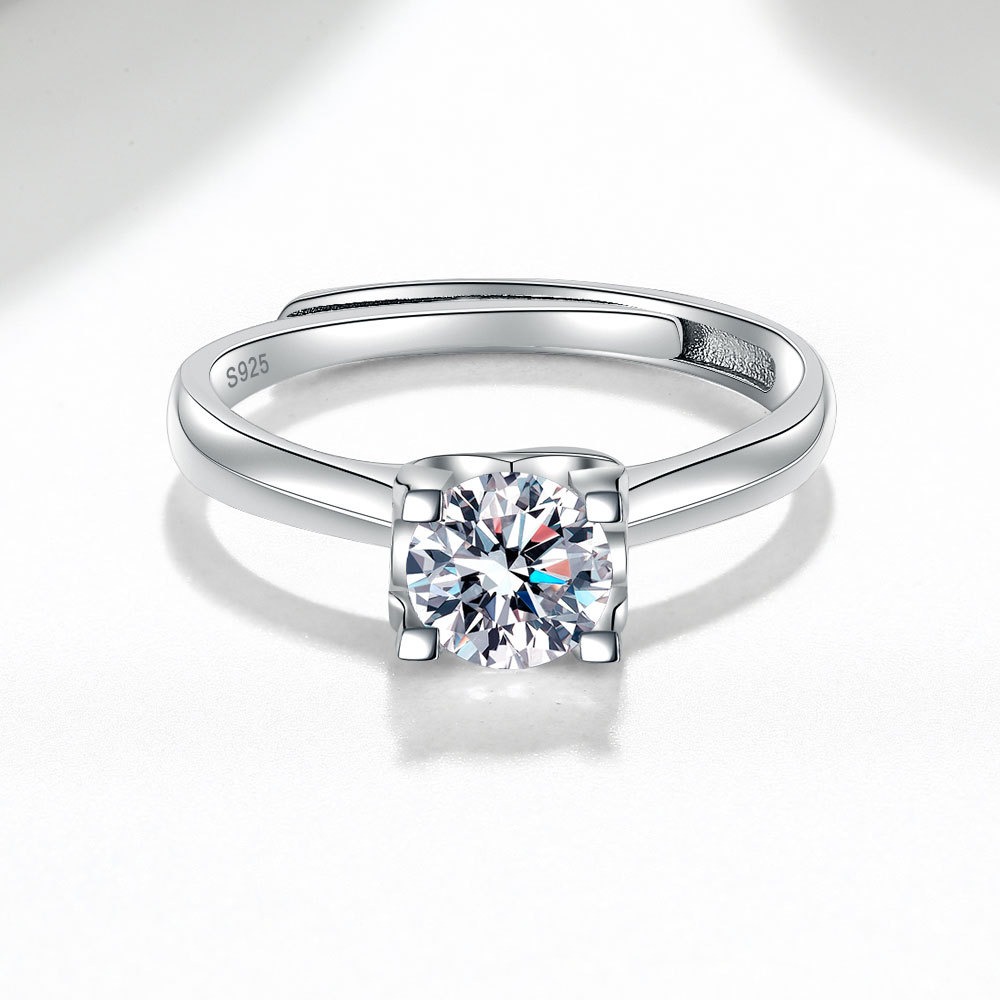 S925 sterling silver ring opening adjustable 1 carat GRA moissanite ring for women