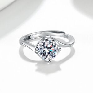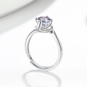 S925 sterling silver ring opening adjustable 1 carat GRA moissanite ring for women