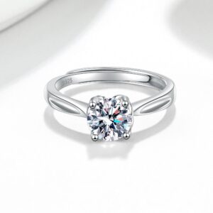S925 sterling silver ring opening adjustable 1 carat GRA moissanite ring for women