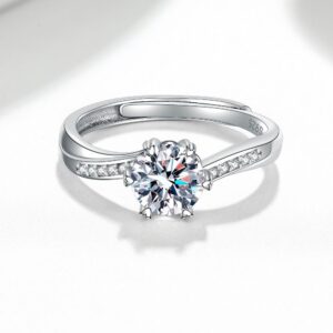S925 sterling silver ring opening adjustable 1 carat GRA moissanite ring for women
