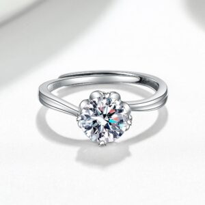 S925 sterling silver ring opening adjustable 1 carat GRA moissanite ring for women
