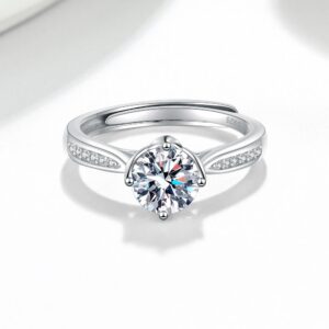 S925 sterling silver ring opening adjustable 1 carat GRA moissanite ring for women