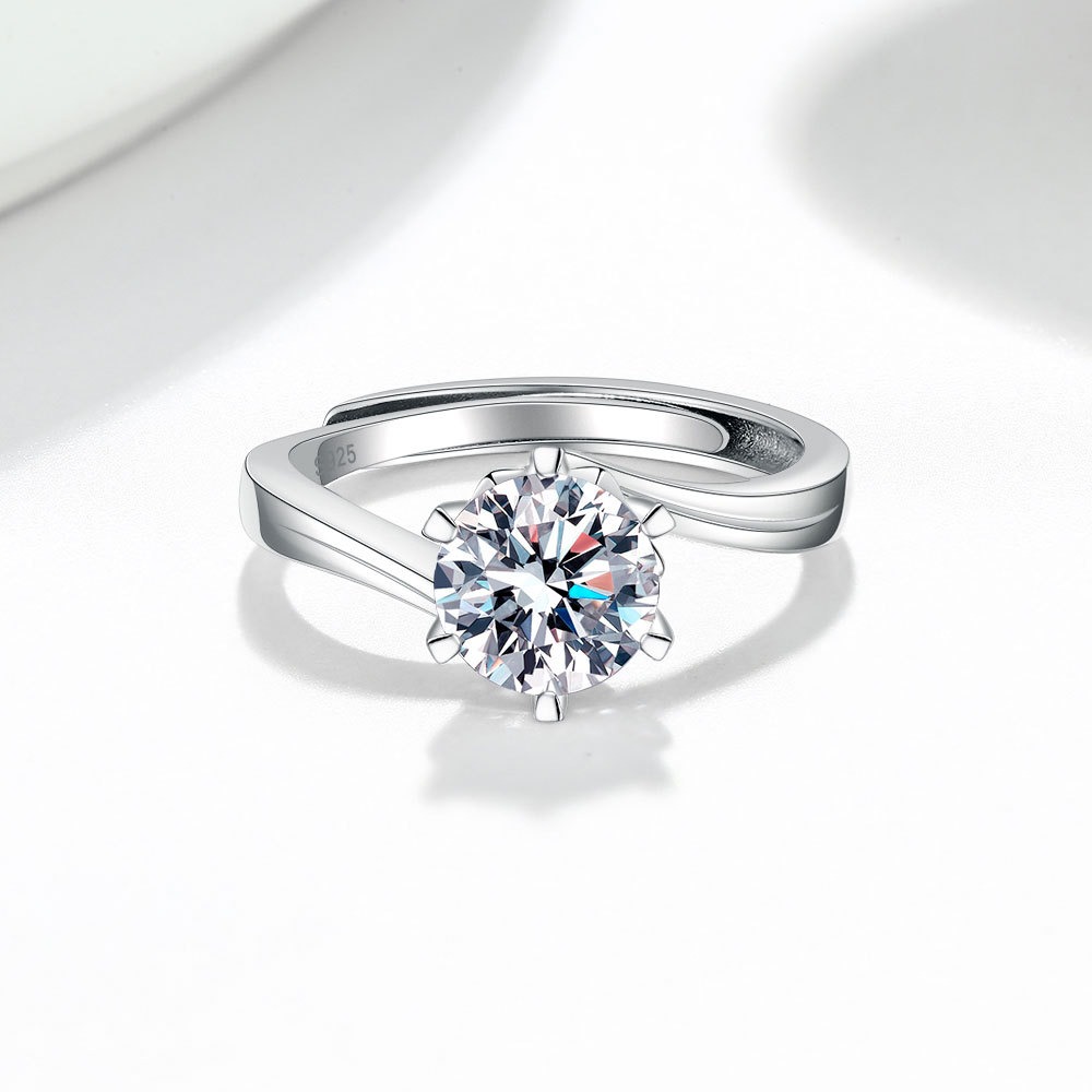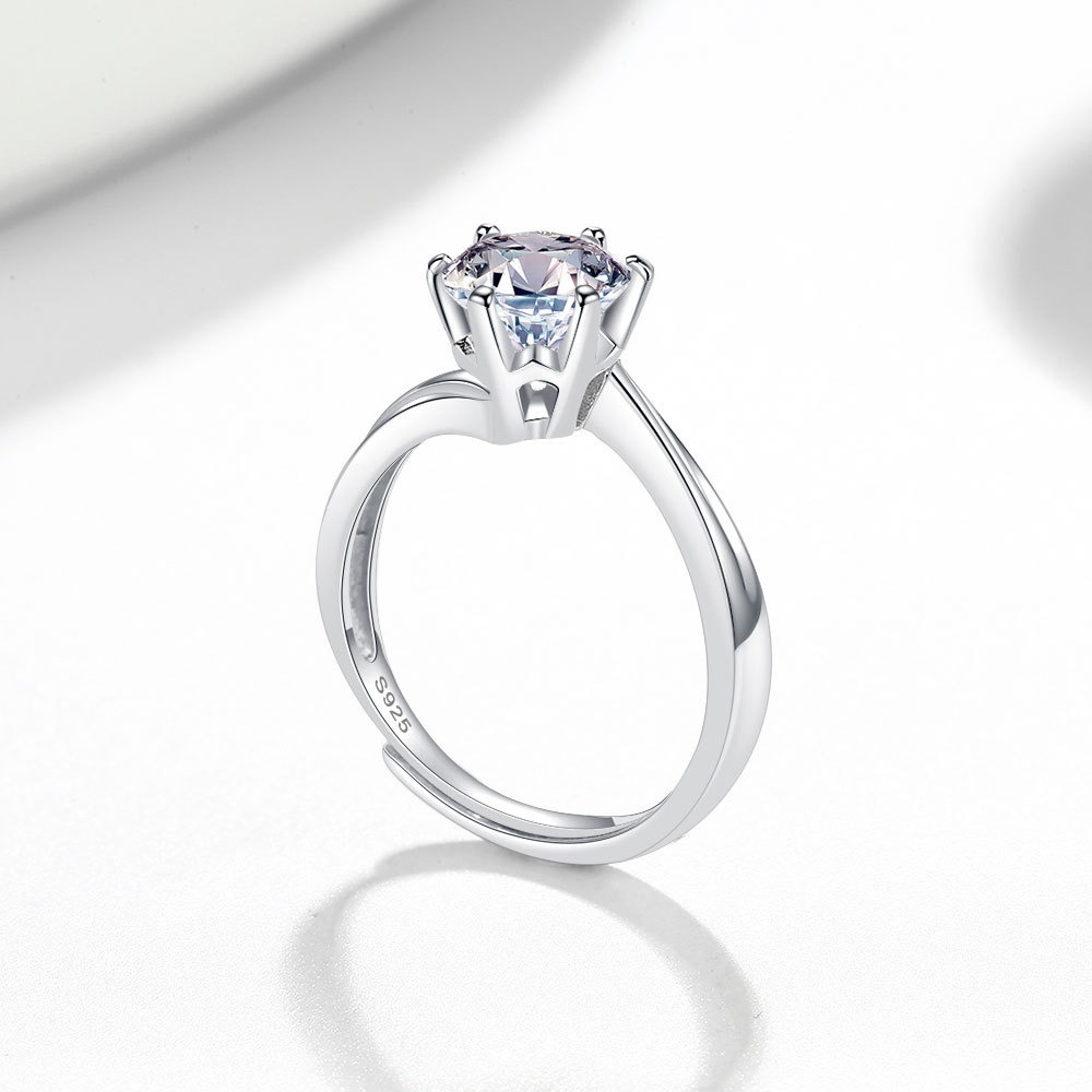 S925 sterling silver ring opening adjustable 1 carat GRA moissanite ring for women