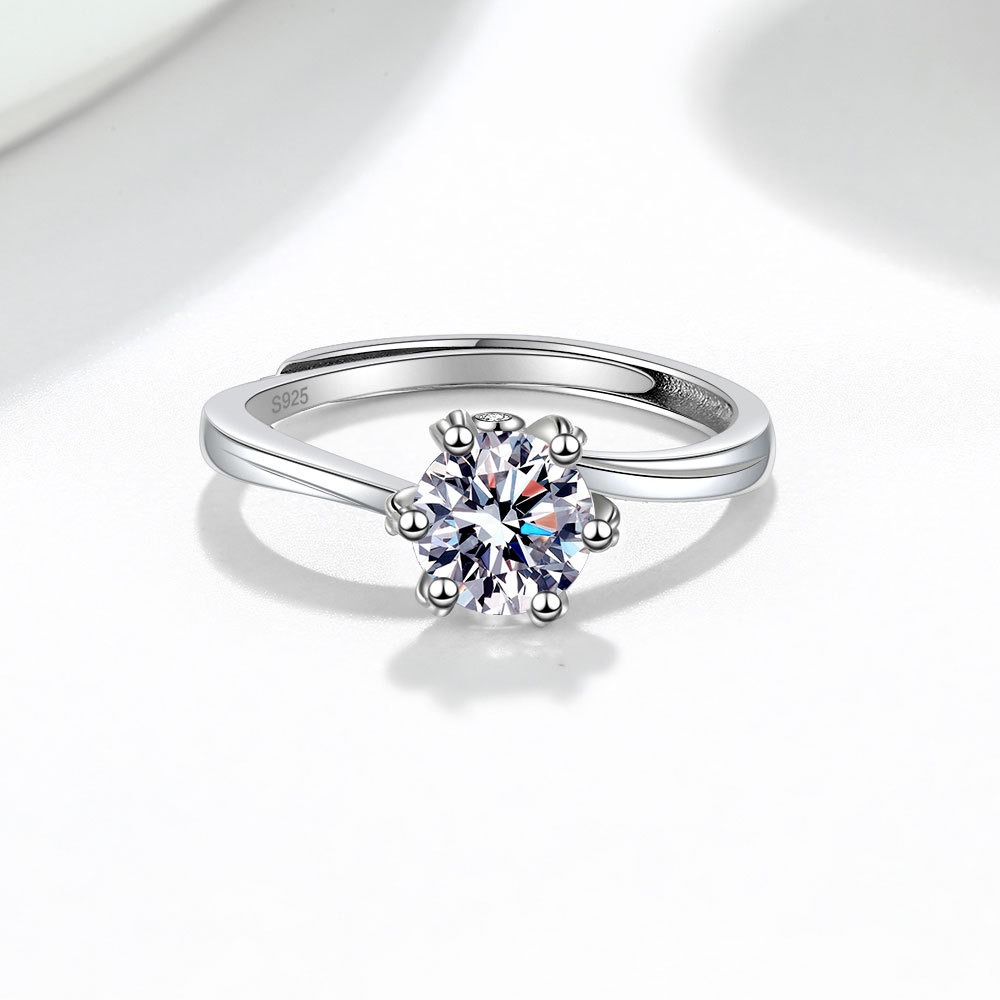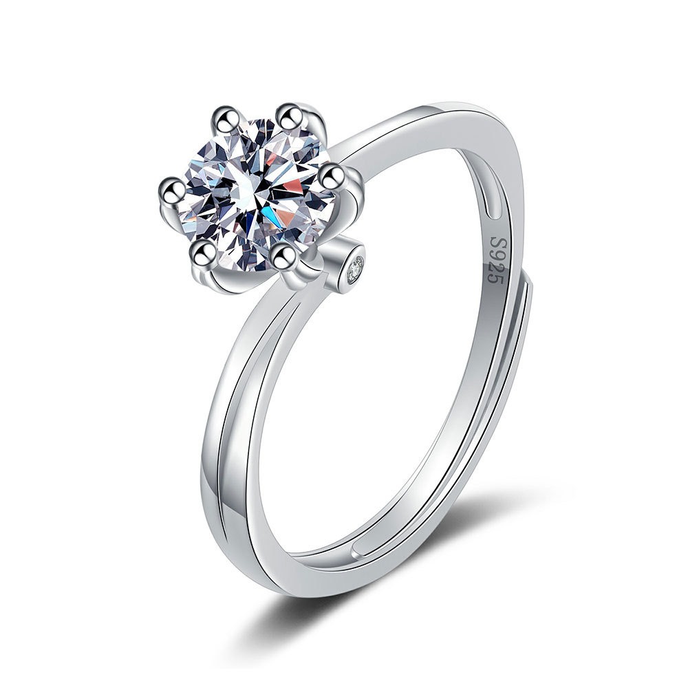 S925 sterling silver ring opening adjustable 1 carat GRA moissanite ring for women