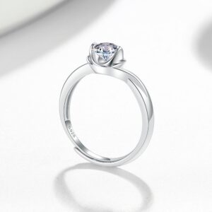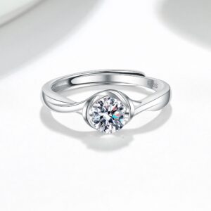 S925 sterling silver ring opening adjustable 1 carat GRA moissanite ring for women