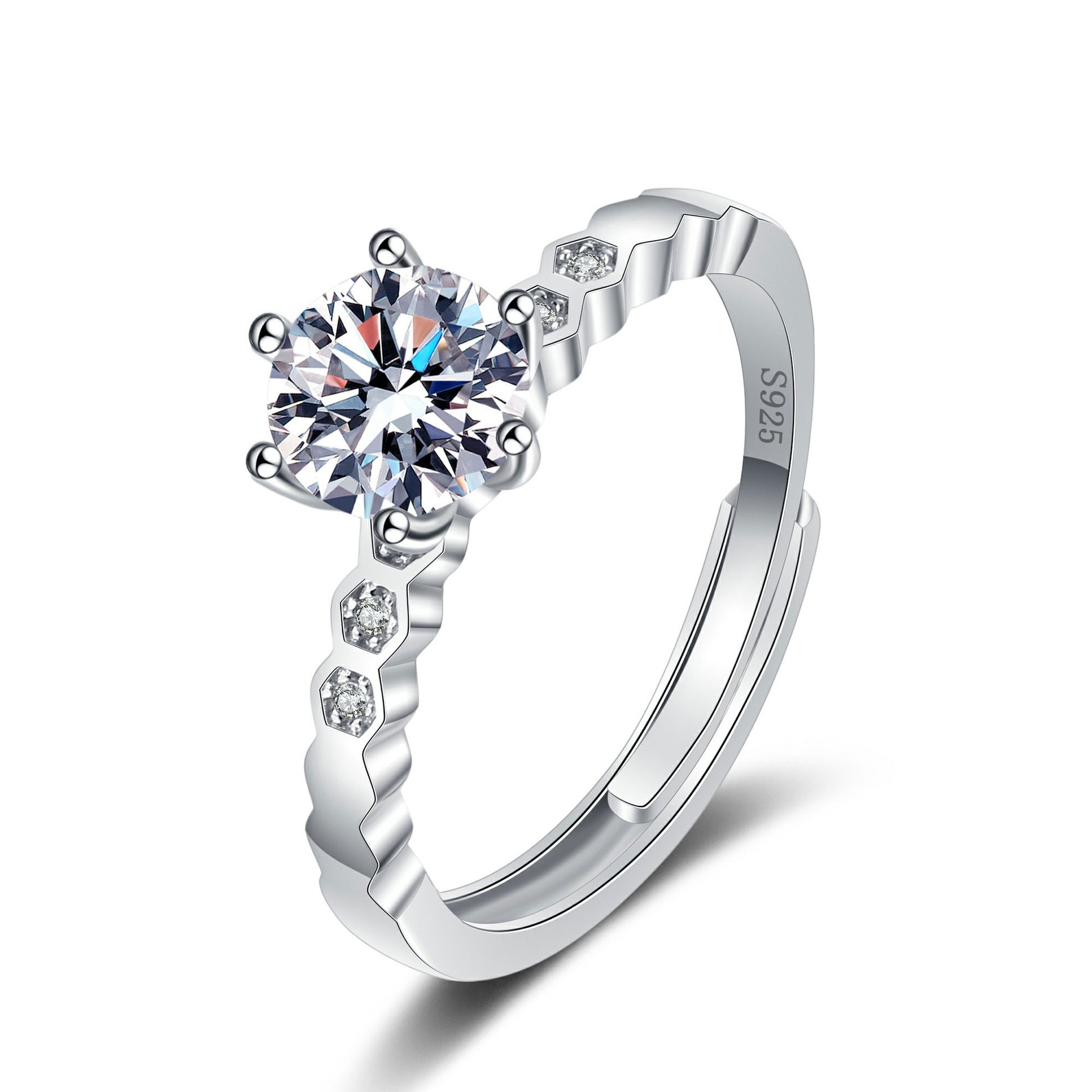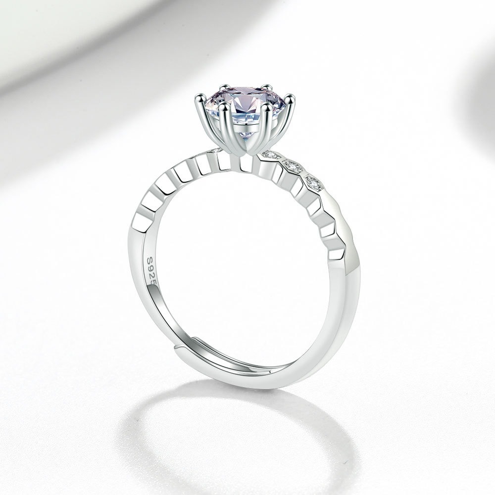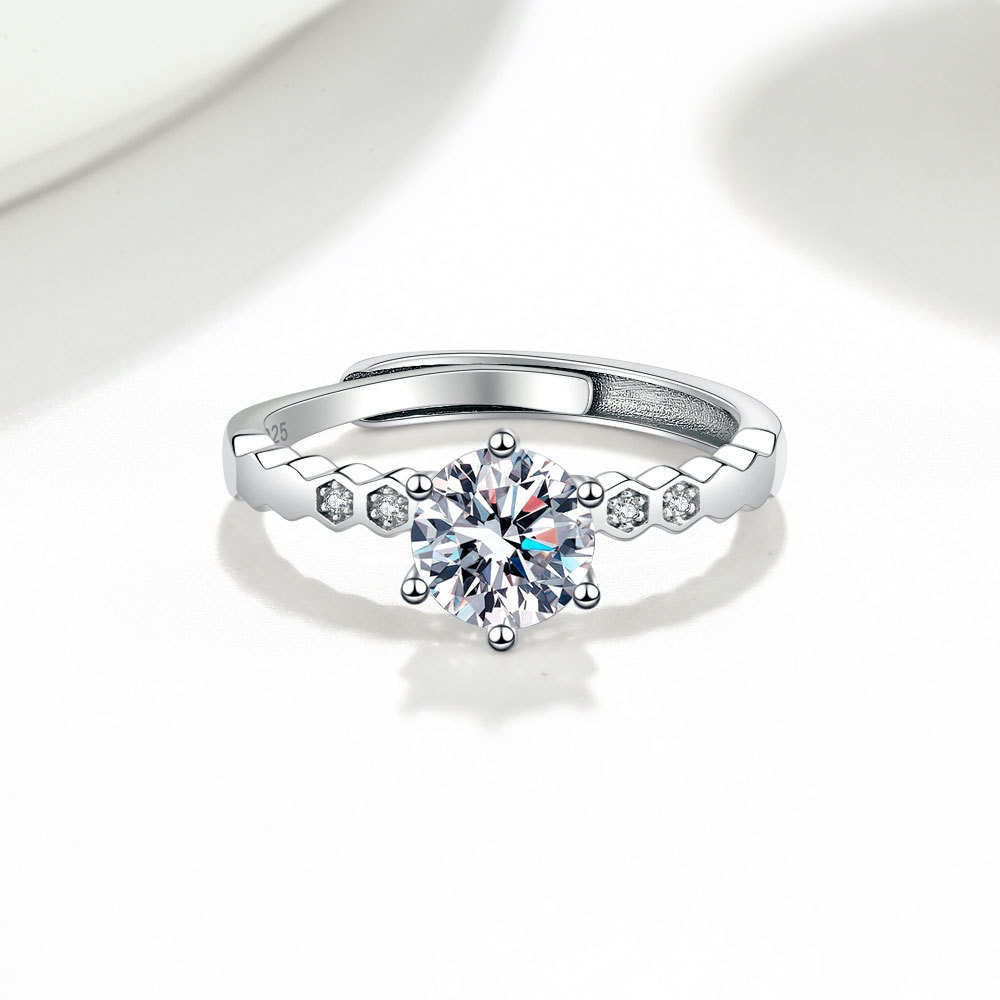S925 sterling silver ring opening adjustable 1 carat GRA moissanite ring for women