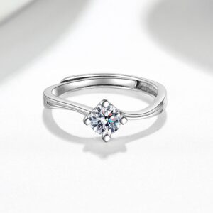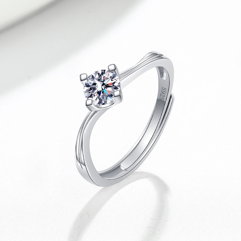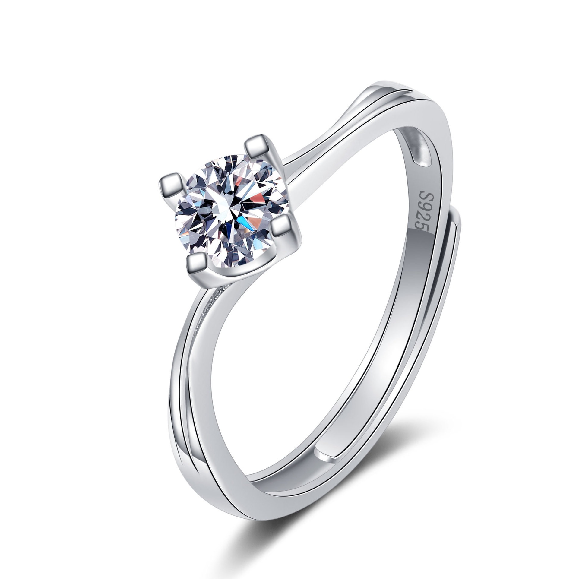 S925 sterling silver ring opening adjustable 1 carat GRA moissanite ring for women
