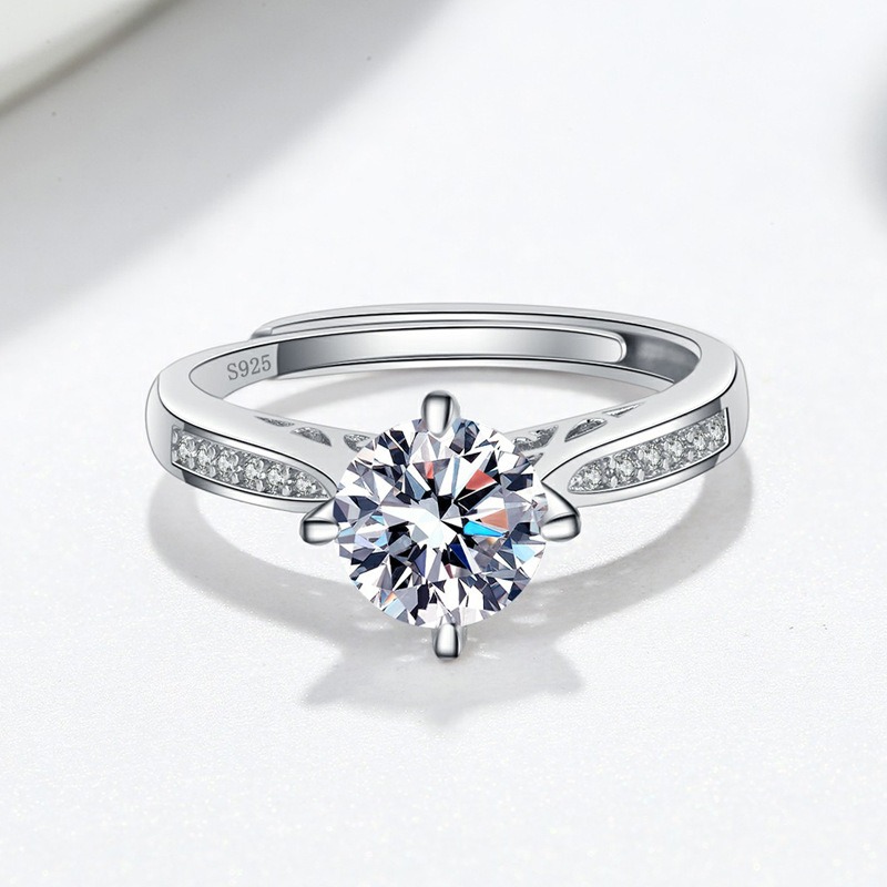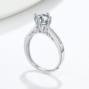 S925 Sterling Silver Ring Opening Adjustable 1 Carat GRA Moissanite Ring for Women