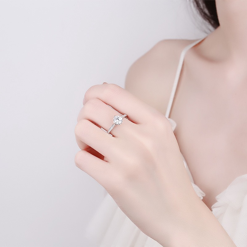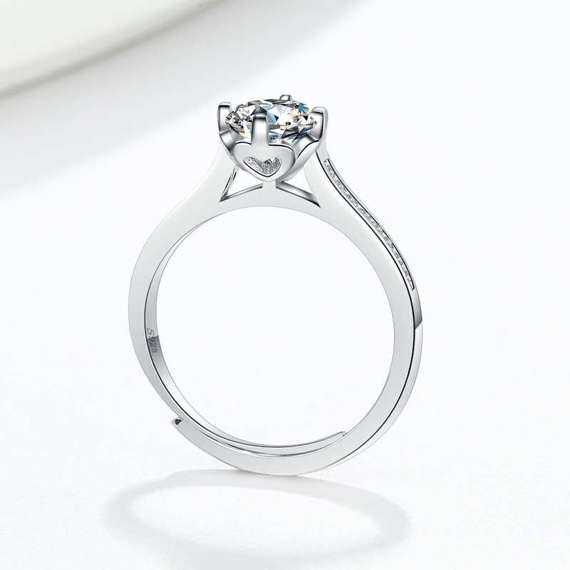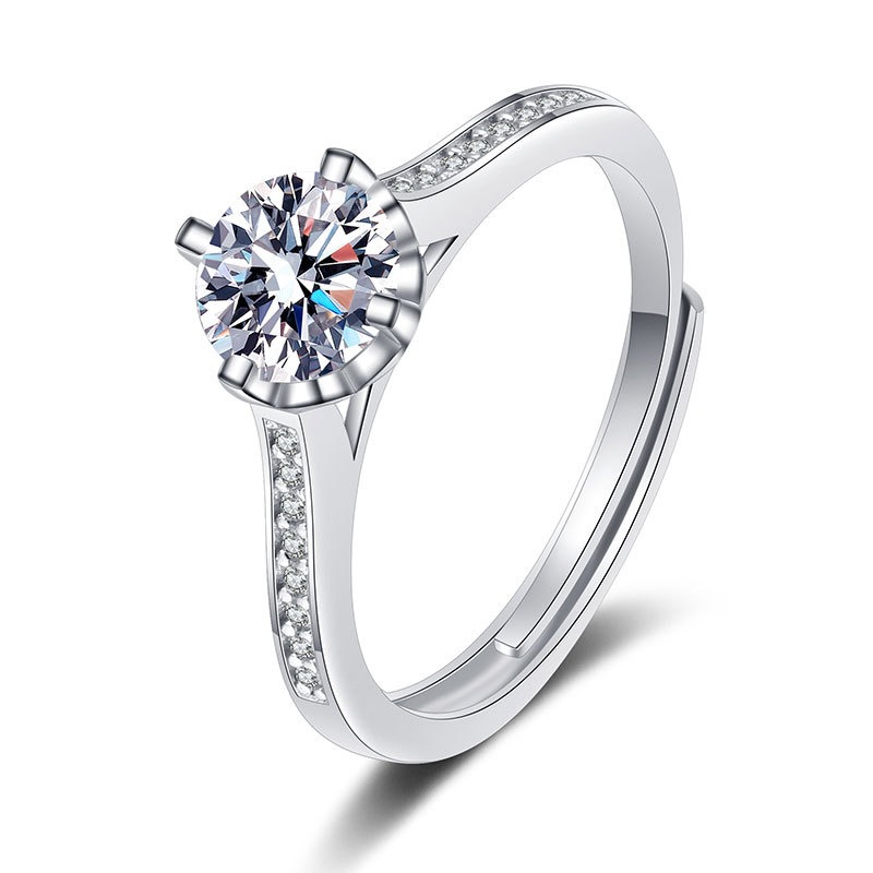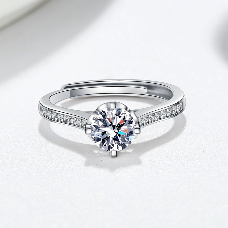 S925 sterling silver ring opening adjustable 1 carat GRA moissanite ring for women