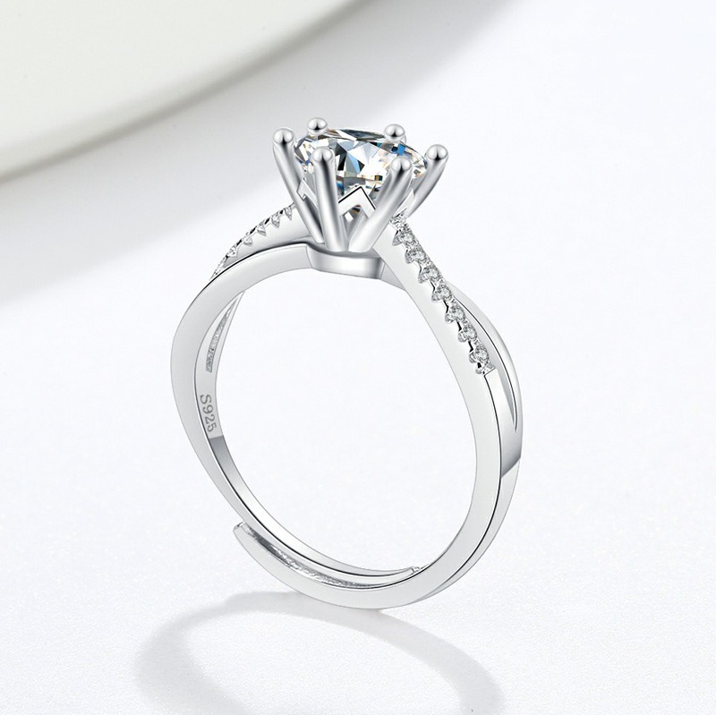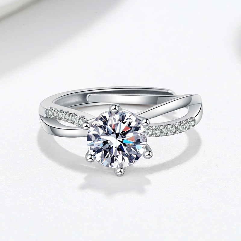 S925 Sterling Silver Ring Opening Adjustable 1 Carat GRA Moissanite Ring for Women