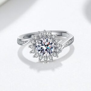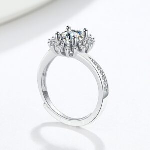 S925 Sterling Silver Ring Opening Adjustable 1 Carat GRA Moissanite Ring for Women