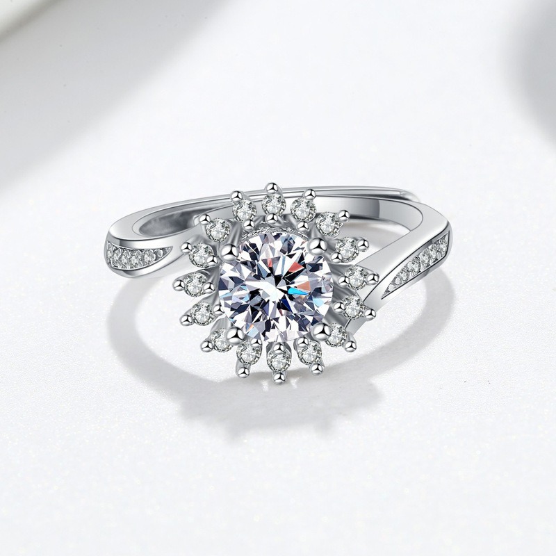 S925 sterling silver ring opening adjustable 1 carat GRA moissanite ring for women