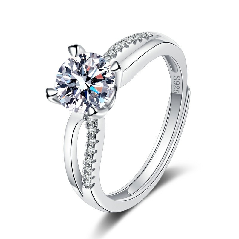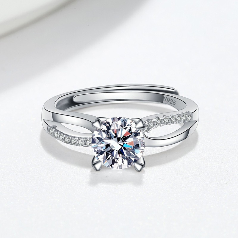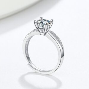 S925 Sterling Silver Ring Opening Adjustable 1 Carat GRA Moissanite Ring for Women