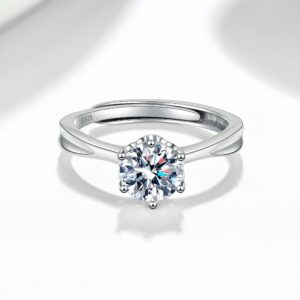 S925 sterling silver ring opening adjustable 1 carat GRA moissanite ring for women