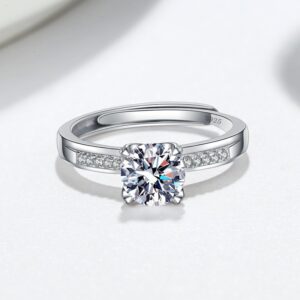 S925 Sterling Silver Ring Opening Adjustable 1 Carat GRA Moissanite Ring for Women