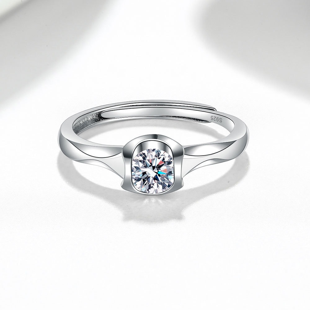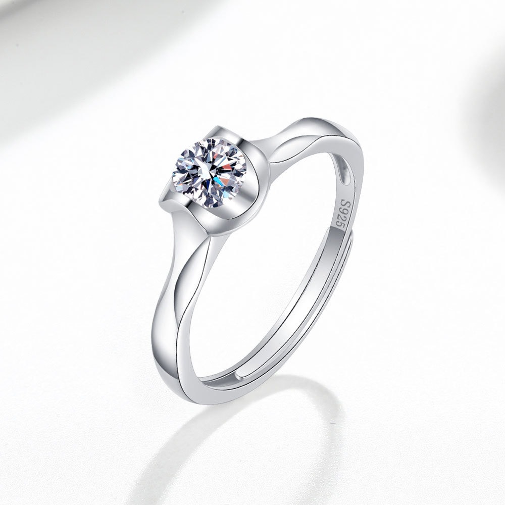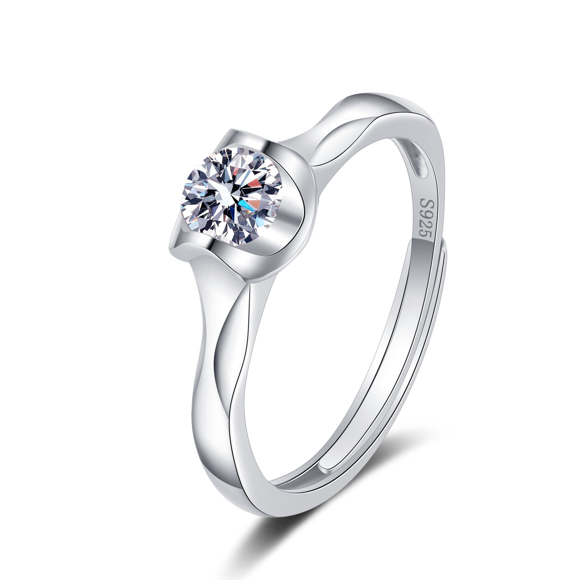 S925 sterling silver ring opening adjustable 50 ct GRA moissanite ring for women