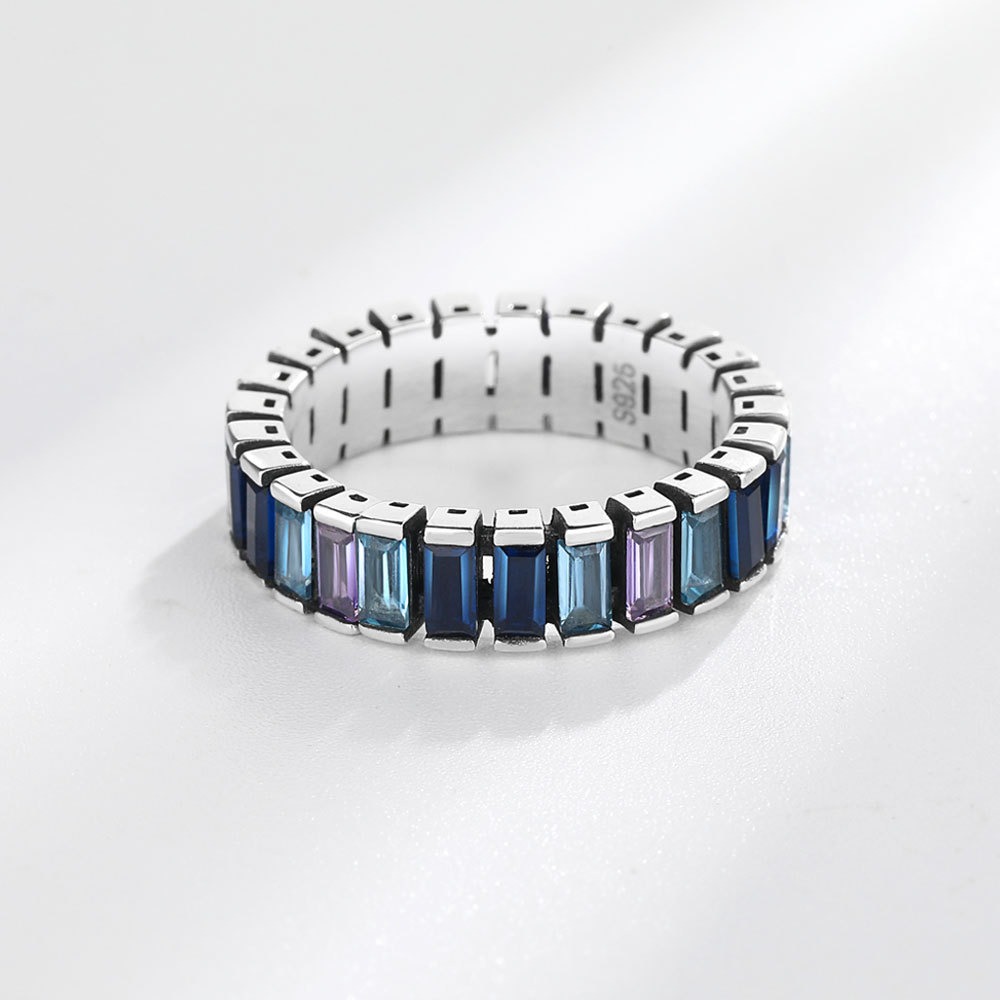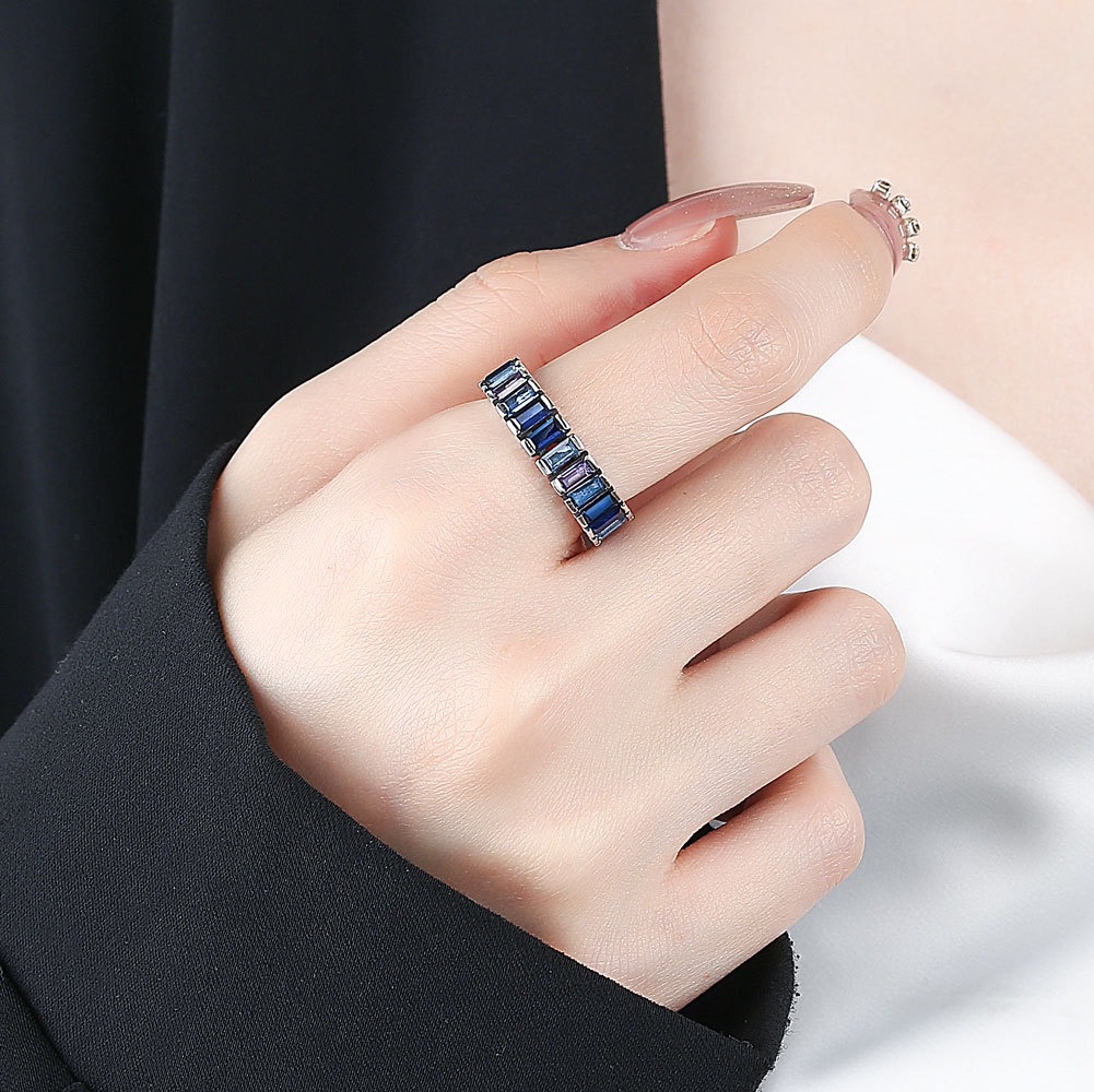 S925 sterling silver ring opening adjustable baguette diamond women's ring quantity