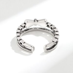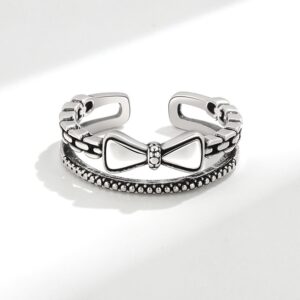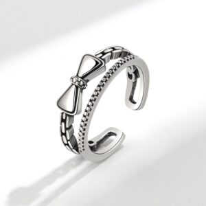 S925 Sterling Silver Ring Opening Adjustable Bow Ring for Women