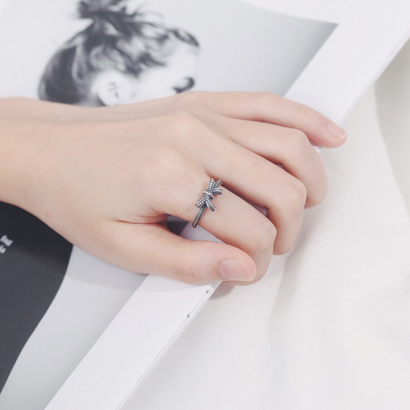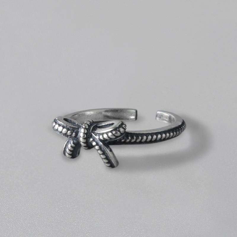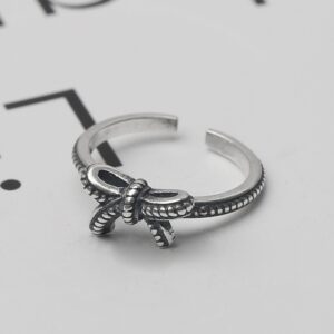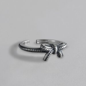 S925 Sterling Silver Ring Opening Adjustable Bow Ring for Women