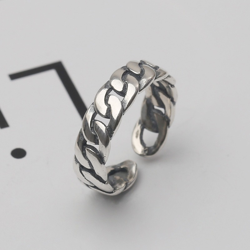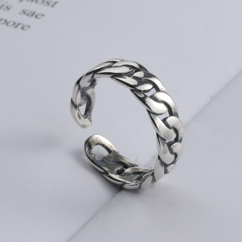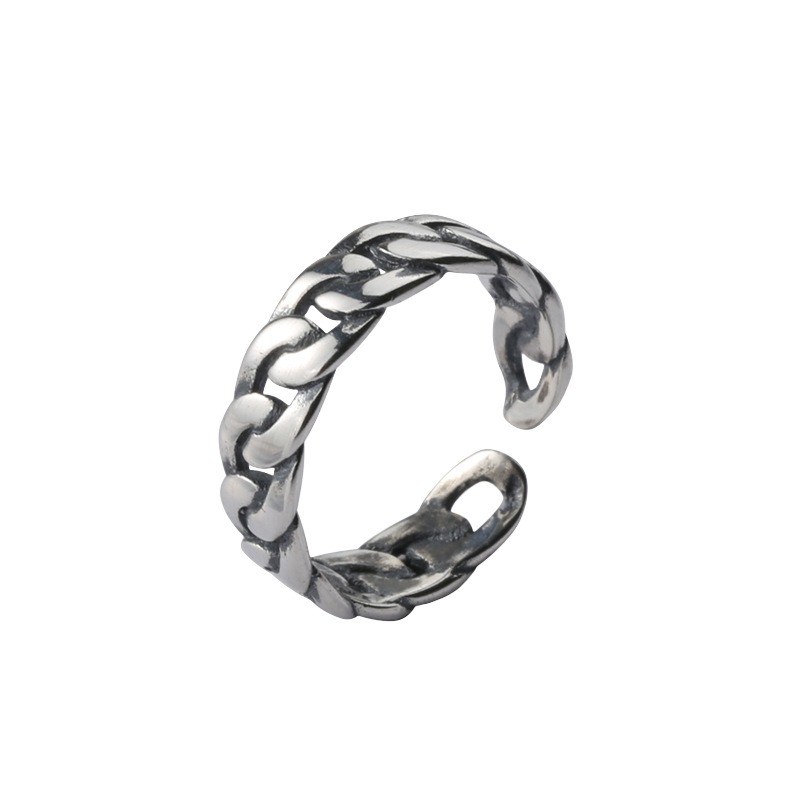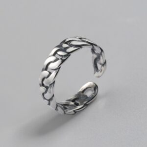 S925 Sterling Silver Ring Opening Adjustable Braided Chain Women’s Ring