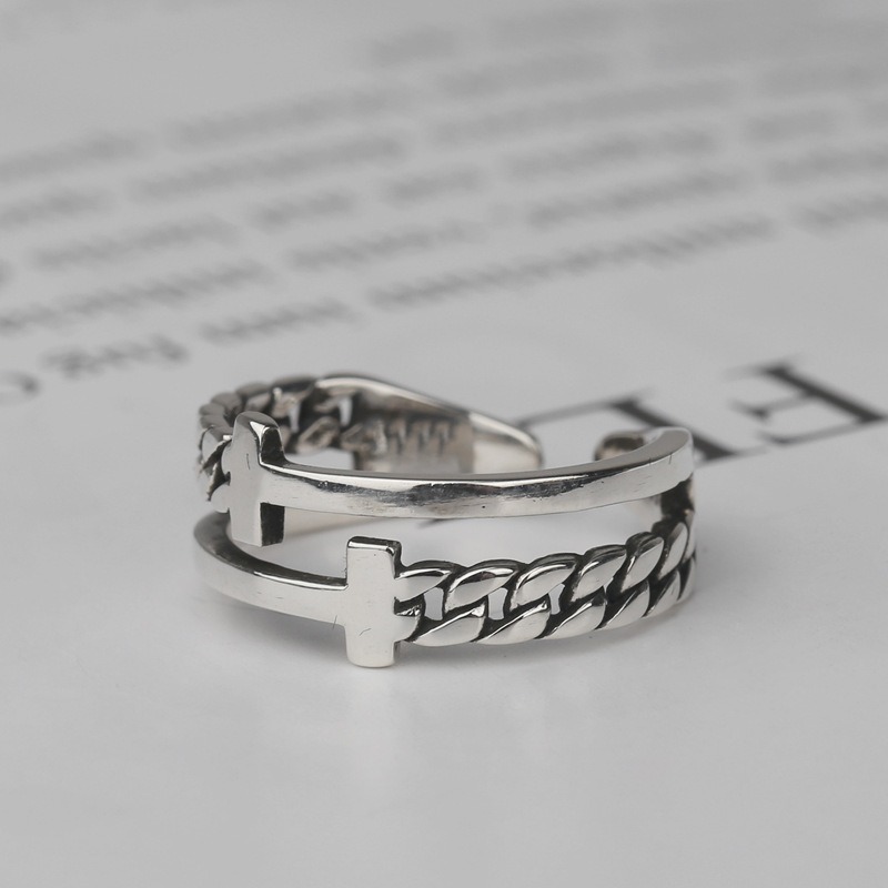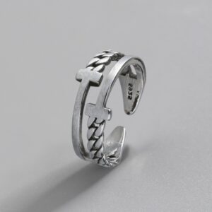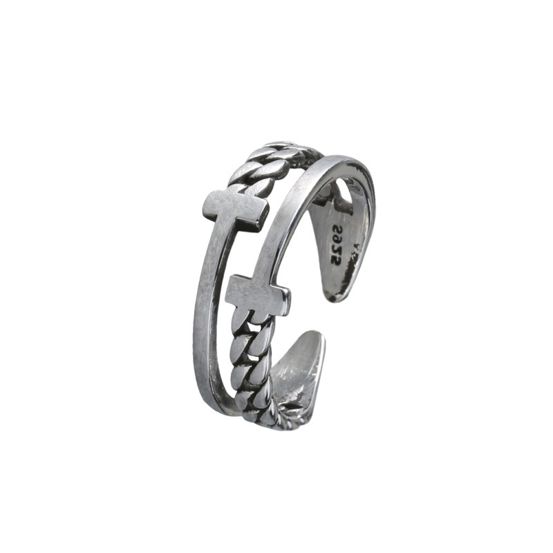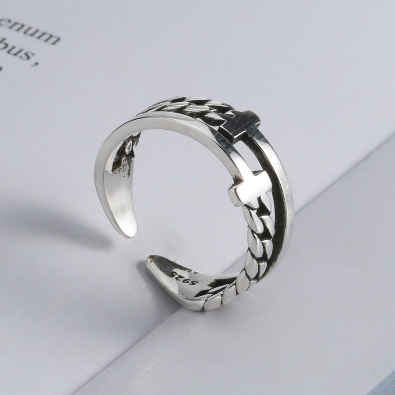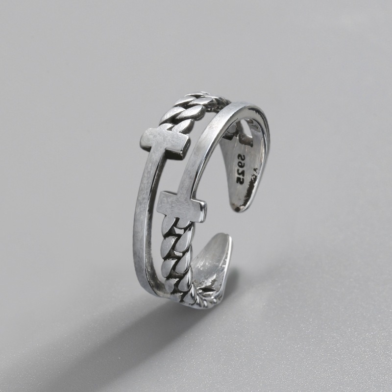S925 Sterling Silver Ring Opening Adjustable Braided Chain Women’s Ring
