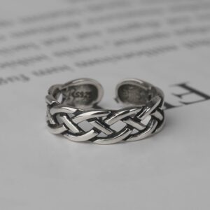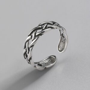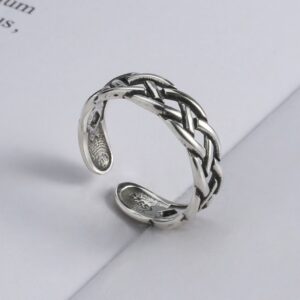 S925 sterling silver ring opening adjustable braided mesh women’s ring