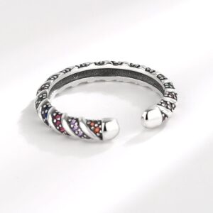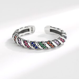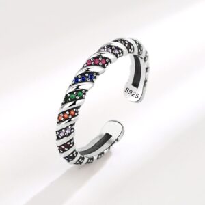 S925 Sterling Silver Ring Opening Adjustable Colored Striped Women’s Ring