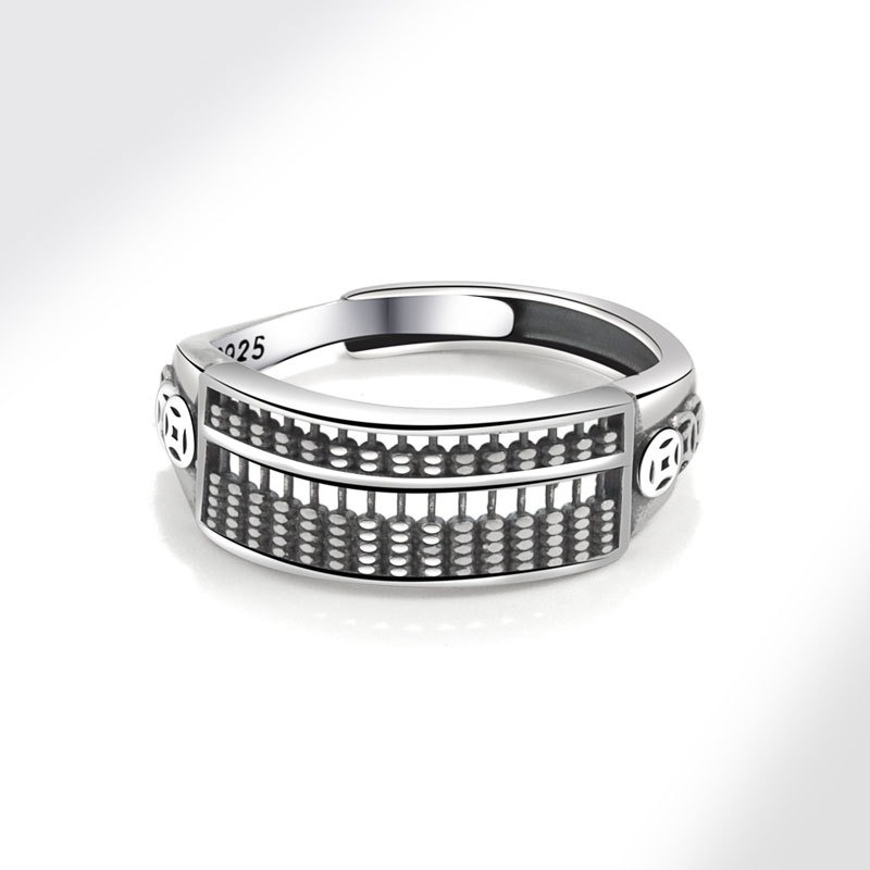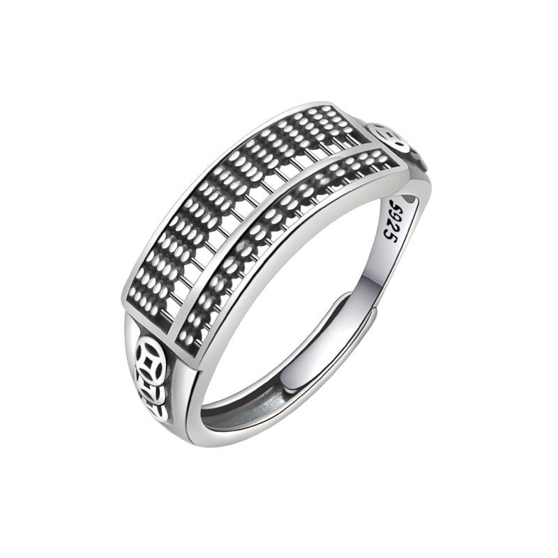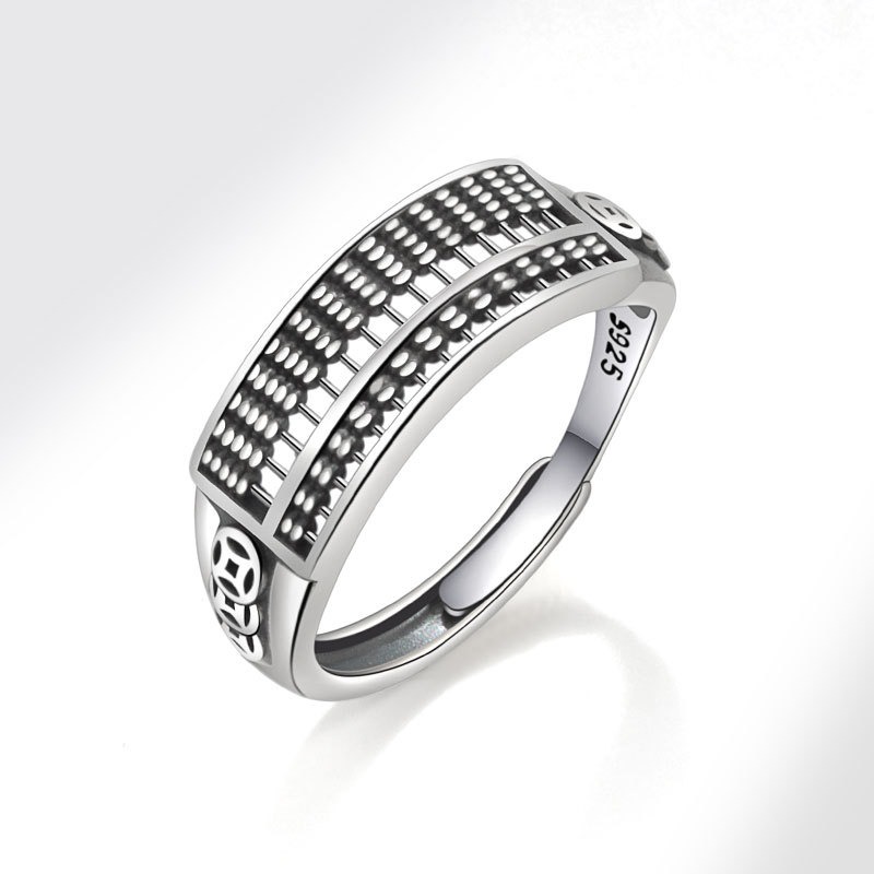 S925 sterling silver ring opening adjustable copper coin abacus women’s ring