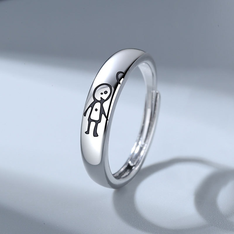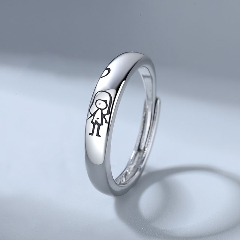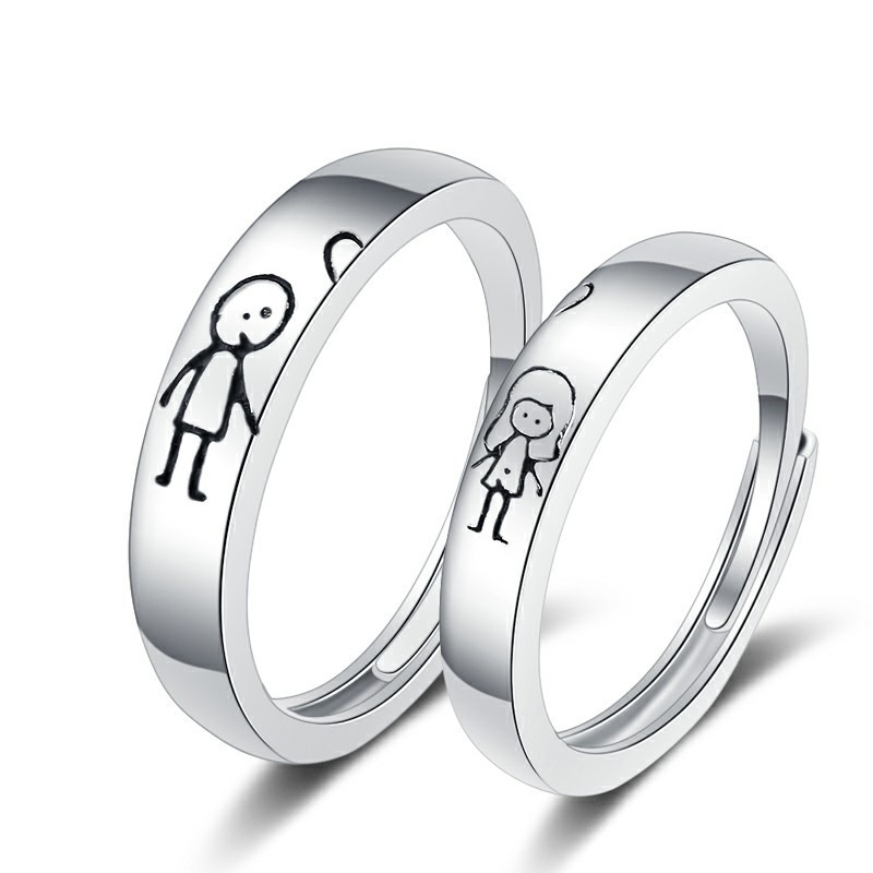 S925 sterling silver ring opening adjustable couple ring