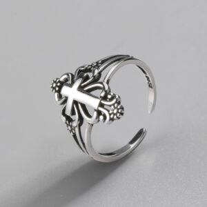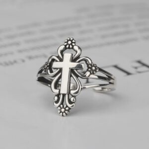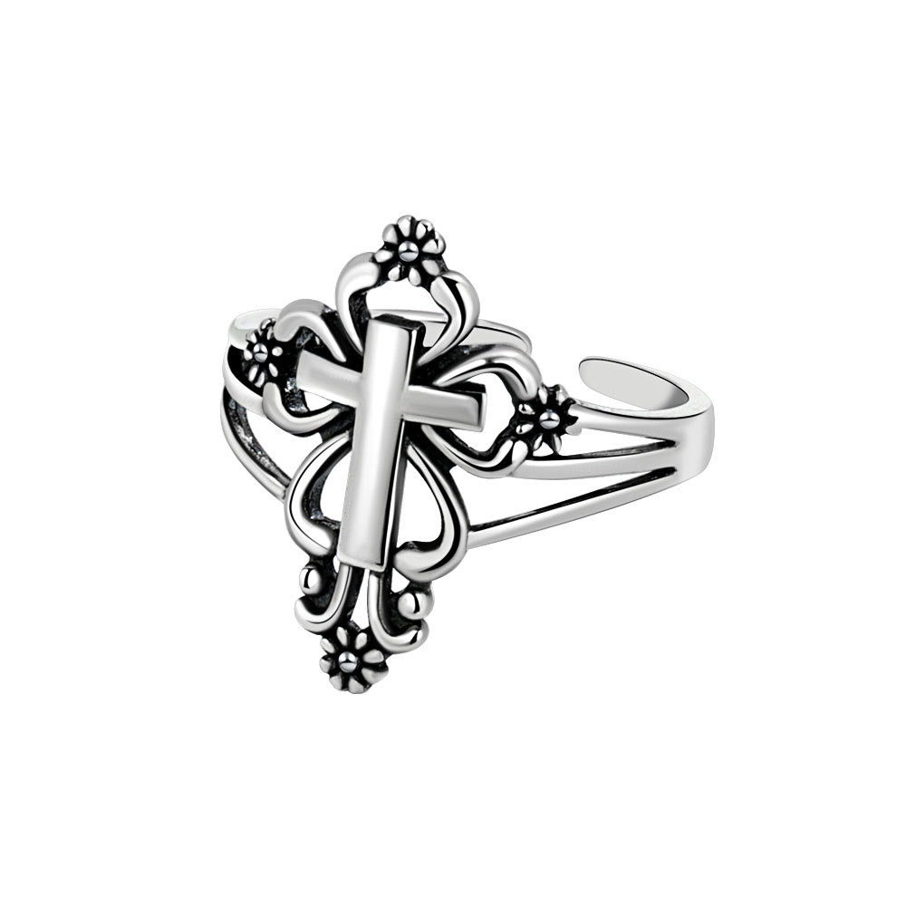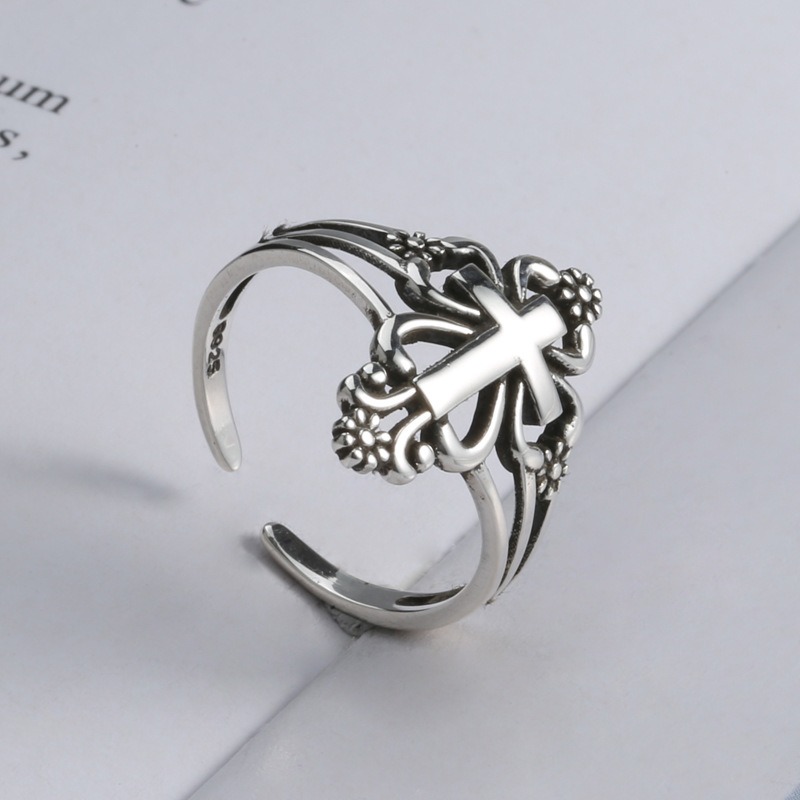 S925 Sterling Silver Ring Opening Adjustable Cross Ring for Women