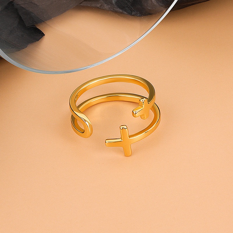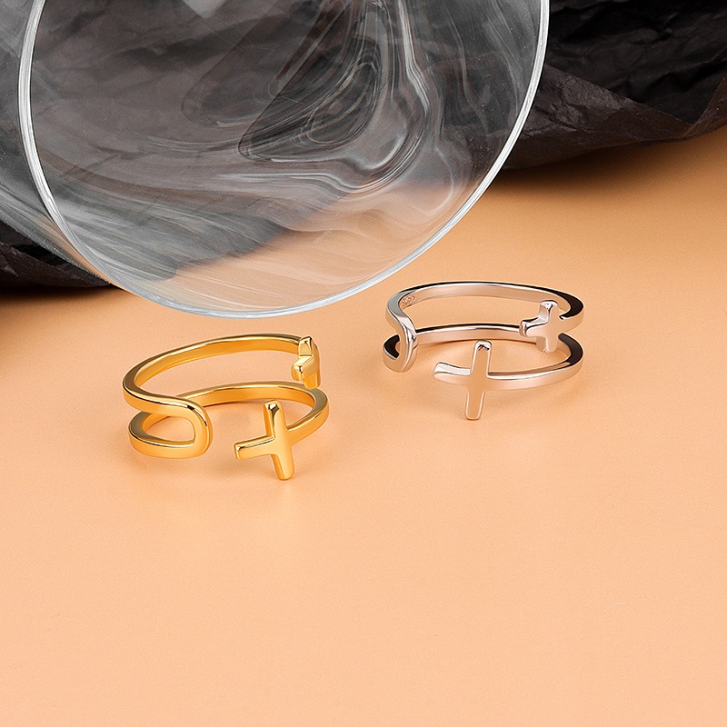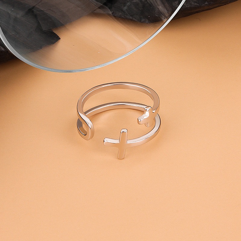 S925 Sterling Silver Ring Opening Adjustable Cross Ring for Women
