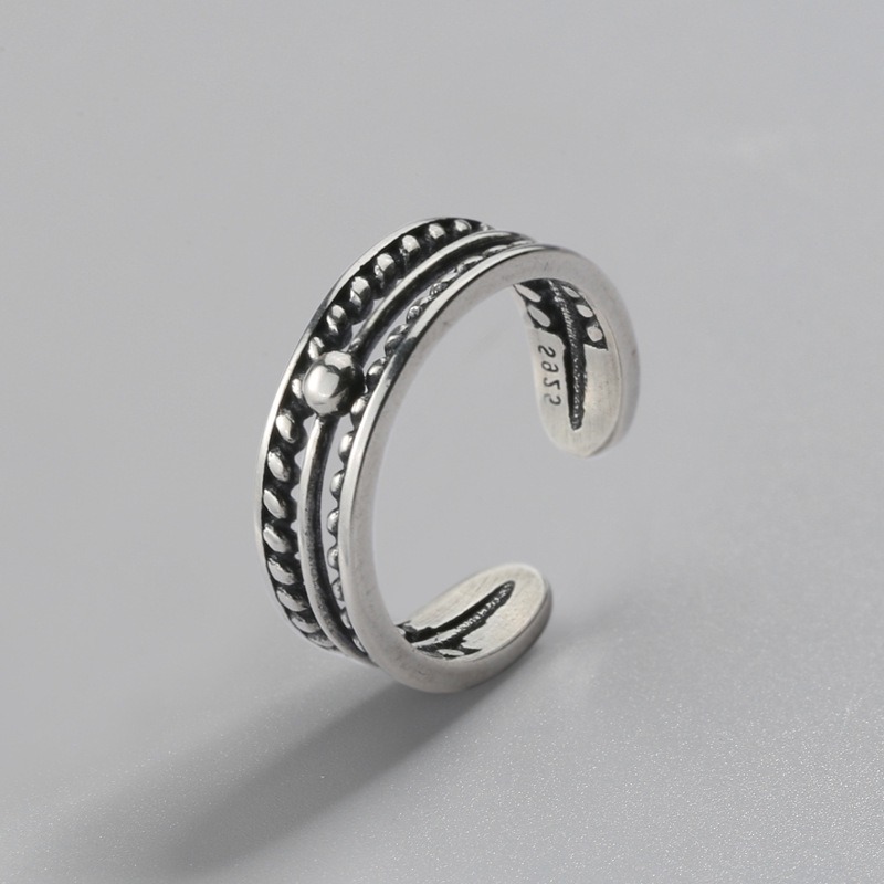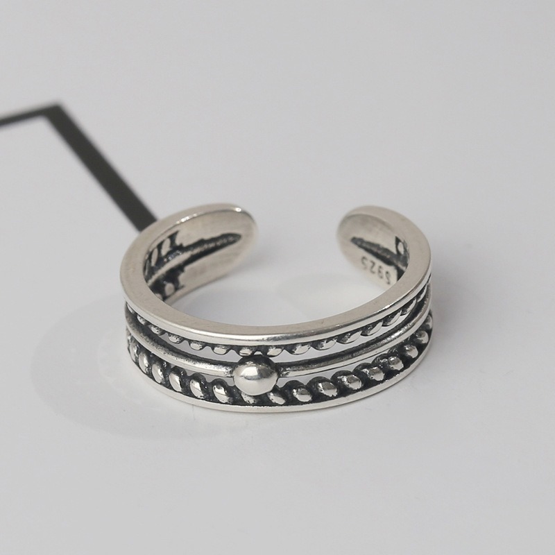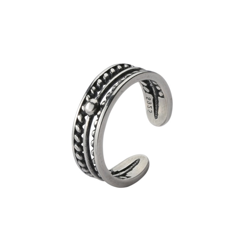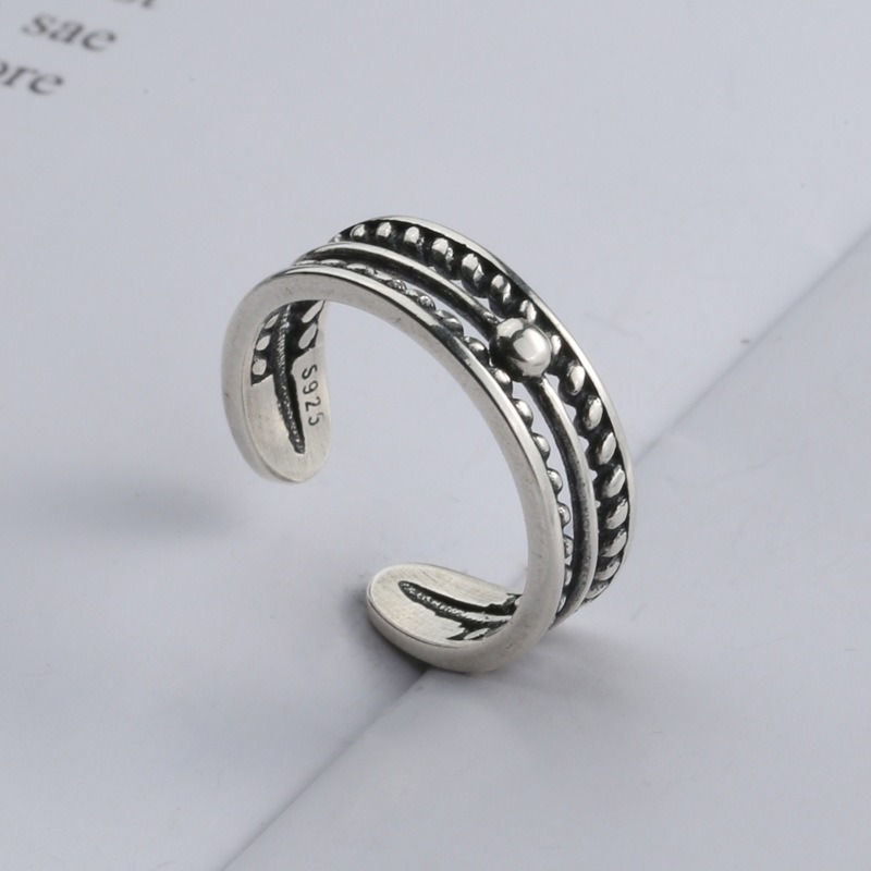 S925 sterling silver ring opening adjustable cut-out bead ring for women