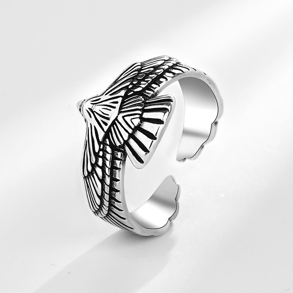 S925 Sterling Silver Ring Opening Adjustable Eagle Ring for Women